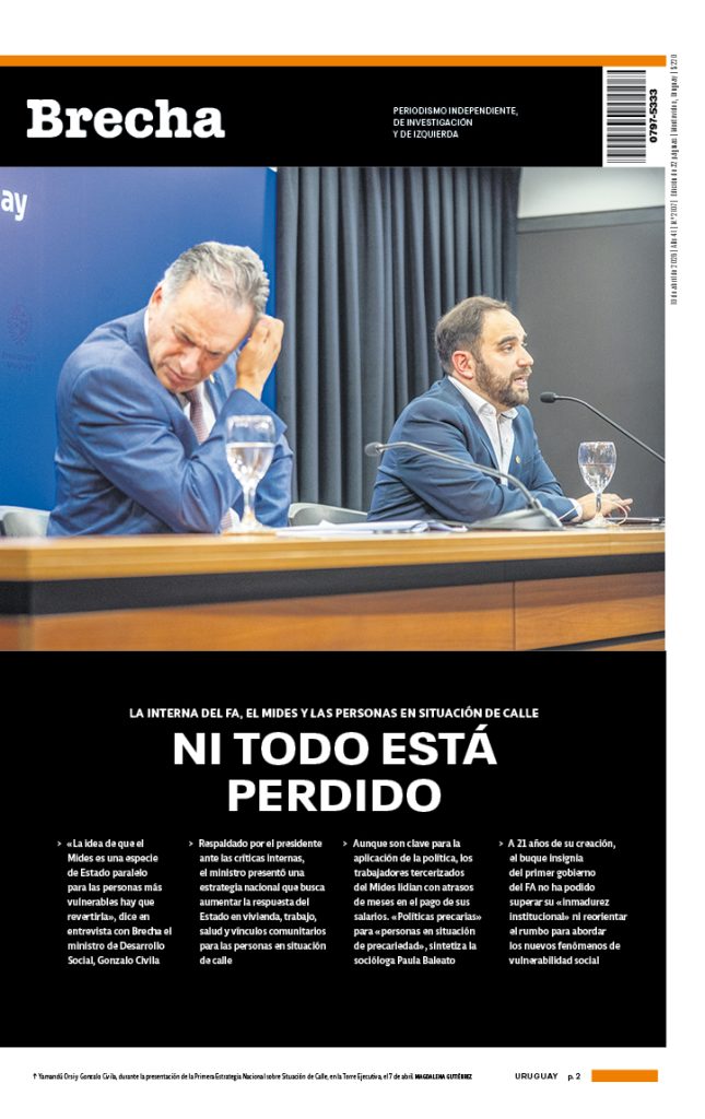 Luego de meses de trabajo, el gobierno presentó su estrategia «inédita» para buscar abatir el récord de personas en situación de calle. La propuesta apunta a aumentar la capacidad de respuesta del Estado durante todo el año y a brindar soluciones de vivienda, trabajo y salud, además de recomponer los vínculos comunitarios. En diálogo con Brecha, Civila afirmó que en una primera etapa el plan se financiará con la reconversión de recursos propios y el aporte de otros ministerios. El objetivo es que se asuma que «estas situaciones son responsabilidad del conjunto del Estado»