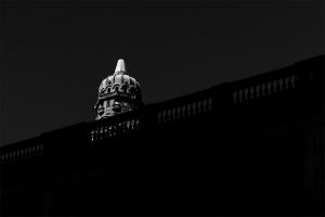 Sol de noche. Una misceláneaFotografíaLa luz del alba revela la silueta del hospital, ciudad de Artigas Héctor Piastri