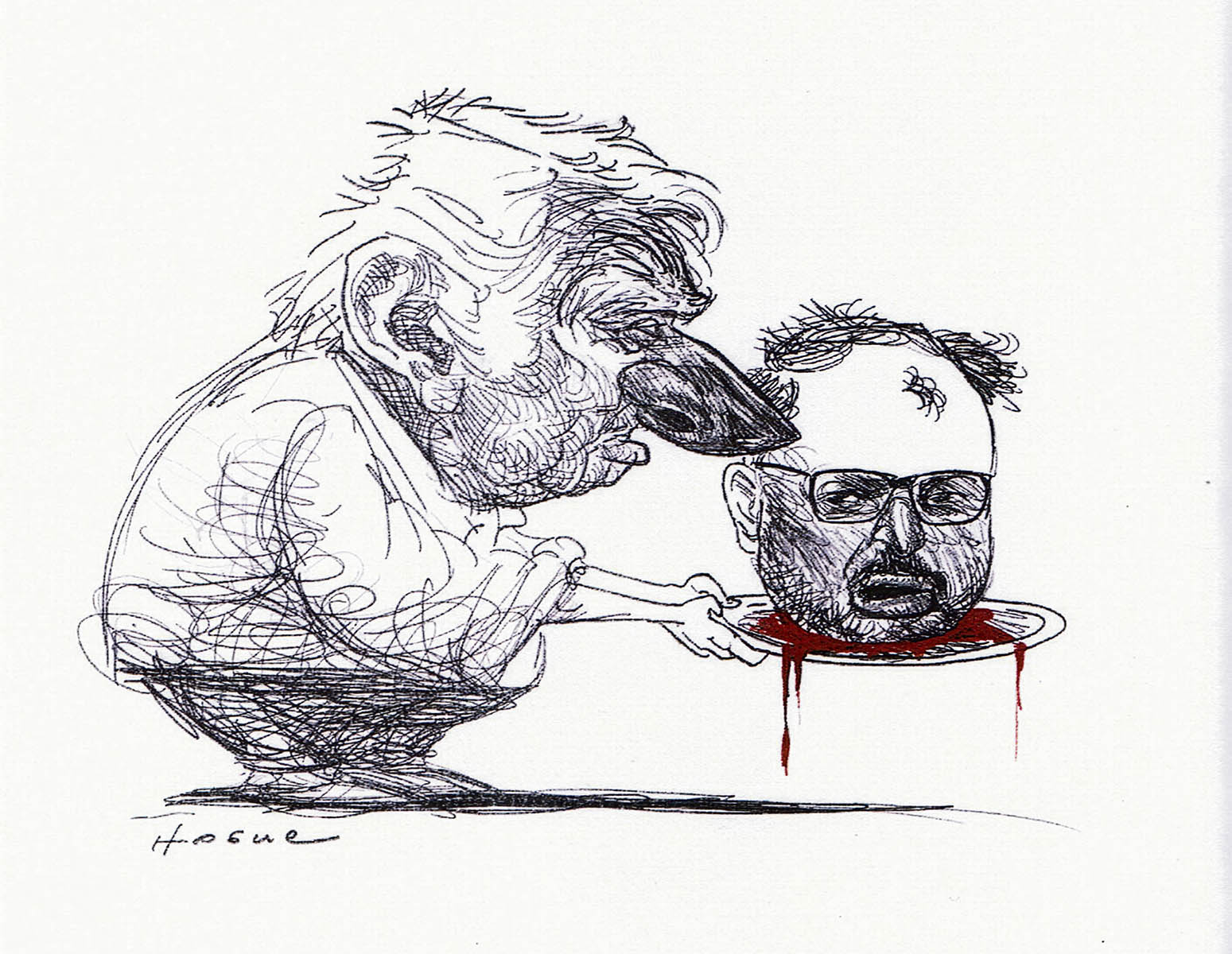 Joseph Conrad ha escrito que inventar un sobrenombre es poner la cara de un chiste en el cuerpo de una verdad.1 Esto es todavía más exacto aplicado a la caricatura política. Corrientemente, el caricaturista captura en una sola imagen una historia completa: un acontecimiento, sus protagonistas, el papel frecuentemente velado que, a juicio del caricaturista, estos actores cumplieron o las consecuencias que sus actos provocaron. En la caricatura editorial hay siempre una postura de quien dibuja, una toma de posición que devela lo que el artista piensa. Tomemos como ejemplo la caricatura que representa a Mujica entregando en bandeja la cabeza cortada de Charles Carrera. Recordemos que, en primera instancia, Carrera dijo que renunciaría a su banca del período de gobierno en curso, pero que integraría la lista de la 609 en las elecciones que iban a llevarse a cabo un mes más tarde. Sin embargo, al día siguiente Carrera cambió de opinión y anunció que no integraría la lista al Senado en la que, hasta entonces, ocupaba el tercer puesto detrás de Alejandro Sánchez y Blanca Rodríguez. En el dibujo de Hogue queda claro que el cambio de postura se debió a que Mujica no estaba dispuesto a poner en riesgo el triunfo electoral. El dibujo no se expide sobre Carrera y los delitos de los que se lo acusan, sino sobre el cálculo electoral del líder del Movimiento de Participación Popular, que sacrifica sin más a quien hasta entonces integraba su círculo más cercano y lo entrega en bandeja.