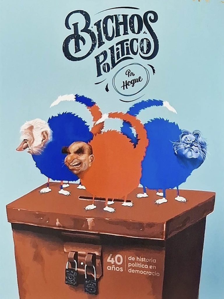 Horacio Guerriero es un artista polifacético cuya mayor exposición pública ocurre bajo la identidad con la cual firmó su primer trabajo para la prensa, a los 12 años: Hogue. Esa identidad no muy secreta es la que ha utilizado en su larga carrera como dibujante y caricaturista, de la cual una parte importante entra en el género denominado caricatura editorial o dibujo político. A lo largo de los años Hogue ha practicado este oficio fundamental para la democracia en varios medios –El Día, El Dedo, Guambia, Búsqueda, El Observador, Canal 12, entre otros– por lo que está en una posición inmejorable para mirar atrás al cumplirse los 40 años de democracia en Uruguay. Y eso fue exactamente lo que hizo al publicar Bichos políticos, el libro que antologa su trabajo cubriendo las idas y vueltas de nuestro sistema político.