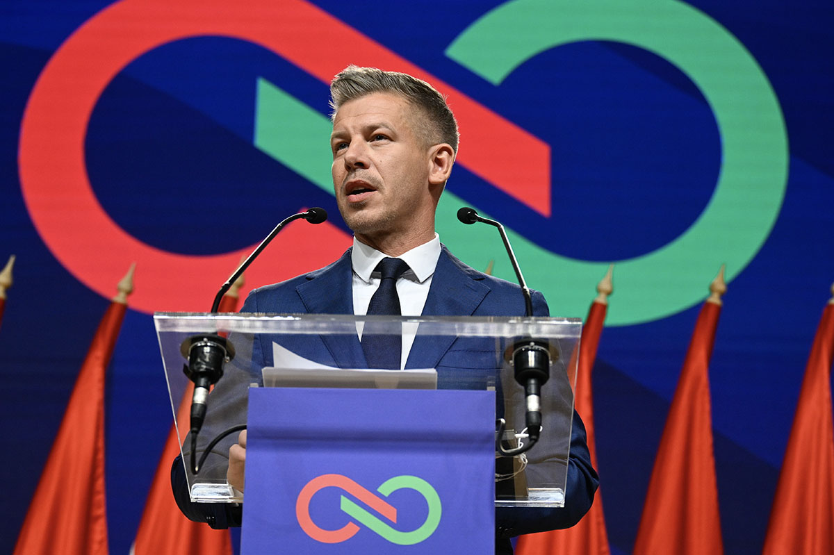 Peter Magyar, líder de Respeto y Libertad (Tisza), tras ganar las elecciones, en Budapest, Hungría, el 13 de abril. EFE, EPA, Tibor Illyes